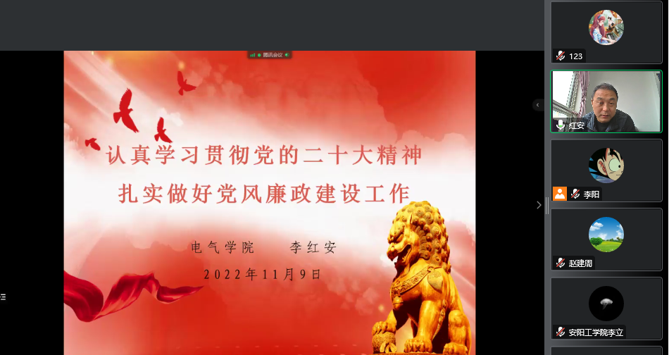 11月9日,电气学院党总支书记李红安通过线上会议形式,为学院科级及以上干部讲廉政党课。