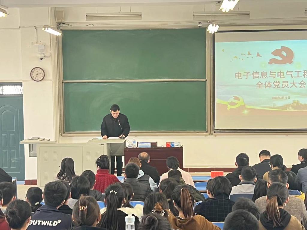 3月15日下午,电气学院在A19-205组织召开全体党员大会,进行新一届党总支委员会换届选举工作。电气学院党总支委员和各支部党员共计163人参会,其中57名预备党员列席,大会由党总支副书记张涵主持。