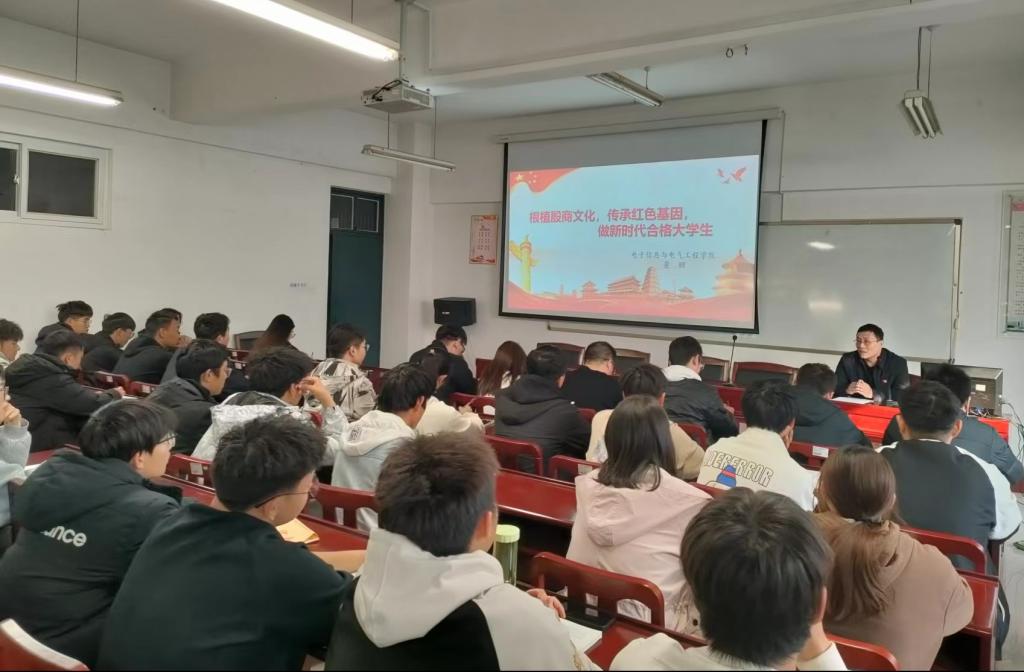 11月21日下午,电子信息与电气工程学院党总支书记董昭在A07-311为2023级电子信息工程专业和自动化专业学生上思政课,全体辅导员教师参加。