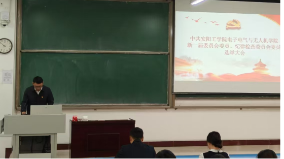 首先,全体起立,奏唱国歌,行注目礼。接着由董昭同志代表上一届党总支委员会向大会作报告,报告详细总结了两年来学院落实全面从严治党工作、以党建促业务发展情况及下一步工作重点。李立同志宣读了此次《党员大会选举办法》并获通过。大会选举产生了中共安阳工学院精品亚洲大片精品免费看党委第一届委员会委员、纪律检查委员会委员。最后,大会在雄壮的《国际歌》中闭幕。