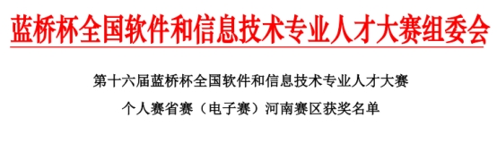 近日,第十六届蓝桥杯全国软件和信息技术专业人才大赛河南赛区公布比赛成绩,我院共获得省一等奖24项,二等奖35项、三等奖50项。