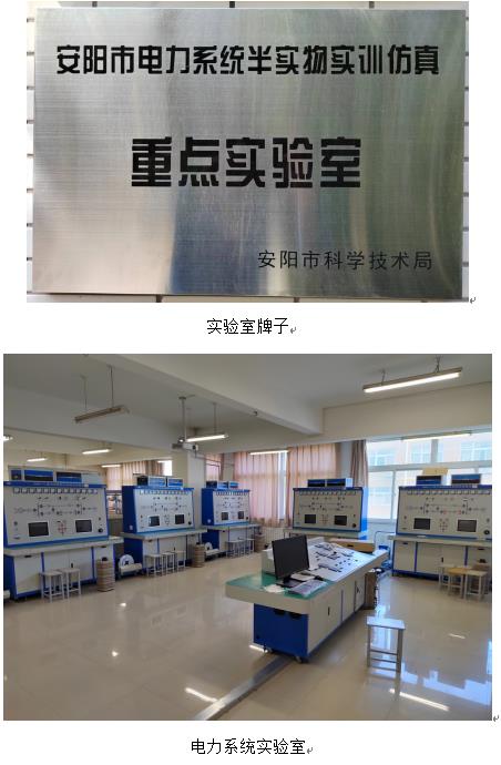 安阳市电力系统半实物实训仿真重点实验室2022年12月经安阳市科学技术局批准成立,以安阳工学院电子信息与电气工程学院为依托建设。实验室围绕国家、省市发展规划,立足于我省、市的电力系统的现实情况,以推进传统电力系统向智能化转型,推进电力系统发展为宗旨,以新型电力系统、新能源发电技术、风光互补发电并网逆变关键技术、电力系统监控与能量管理为研究重点,以学院半实物仿真平台为依托,为相关产业的发展提供技术支撑和创新平台。
