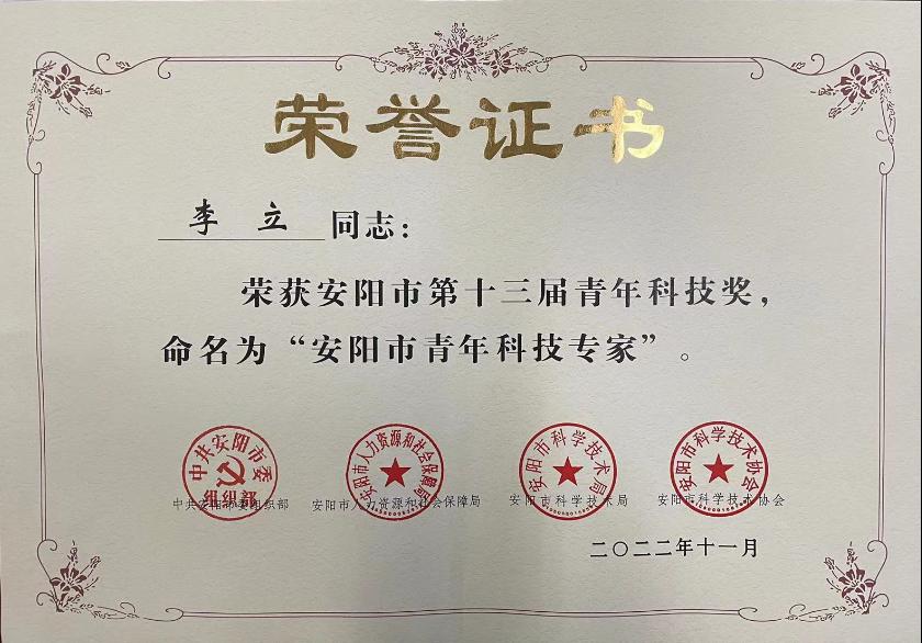 根据《安阳市青年科技奖评选管理办法》,经专家评审、市青年科技奖领导工作委员会审批,公布了第十三届青年科技奖评选结果。我院教师李立当选为2022年安阳市青年科技专家。是我院人才队伍建设取得的新进展。