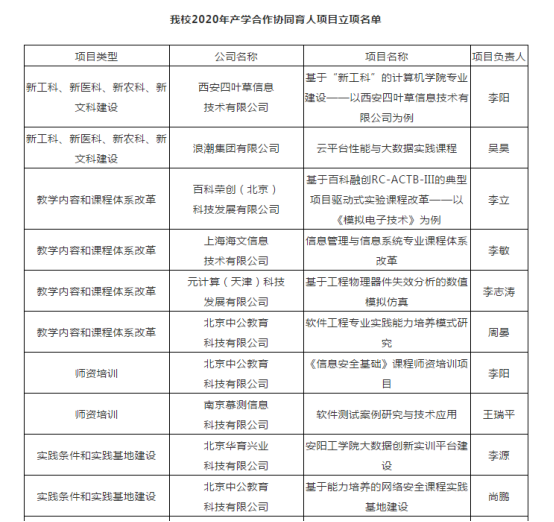 近日,教育部高等教育司发布通知,公布了2020年产学合作协同育人项目立项名单,我院李立副教授主持的 《基于百科融创RC-ACTB-III的典型项目驱动式实验课程改革——以《模拟电子技术》为例》项目获批立项。下一步,将在学院指导下以项目为契机加强与相关企业加强联系,高质高效推进项目实施,进一步推进产学合作,培养更多适应现代产业发展要求的高素质人才。