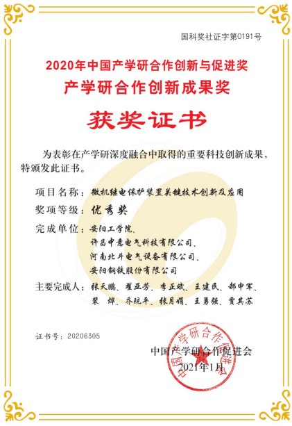近日,中国产学研合作促进会发布通知,公布了2020年中国产学研合作创新与促进奖——产学研合作创新成果奖获奖名单,我院张天鹏副教授主持,翟亚芳副教授、李正斌副教授参与完成的《微机继电保护装置关键技术创新及应用》获得优秀奖。