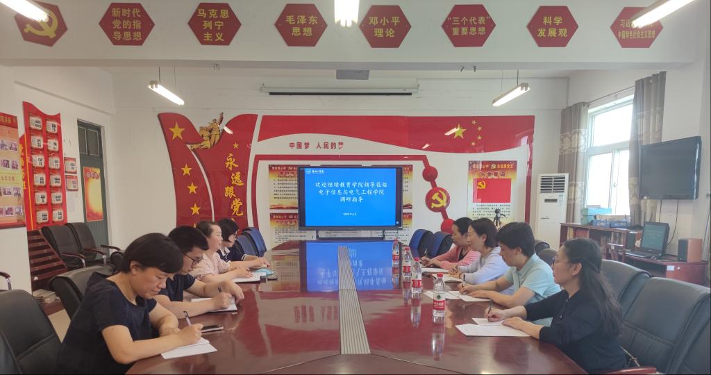 6月13日下午,继续教育学院党总支书记杨聪聪一行到电气学院调研。会议由电气学院副院长段德功主持,电气工程及其自动化教研室主任及骨干教师参加调研。