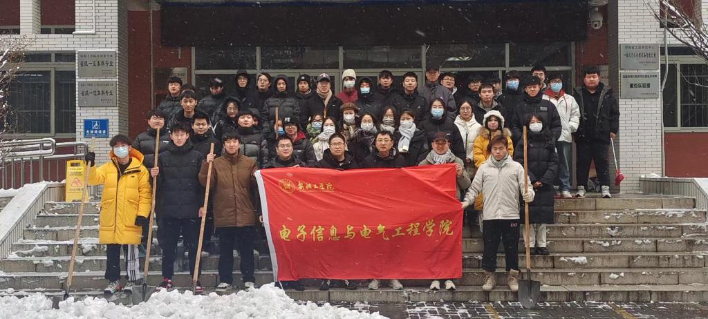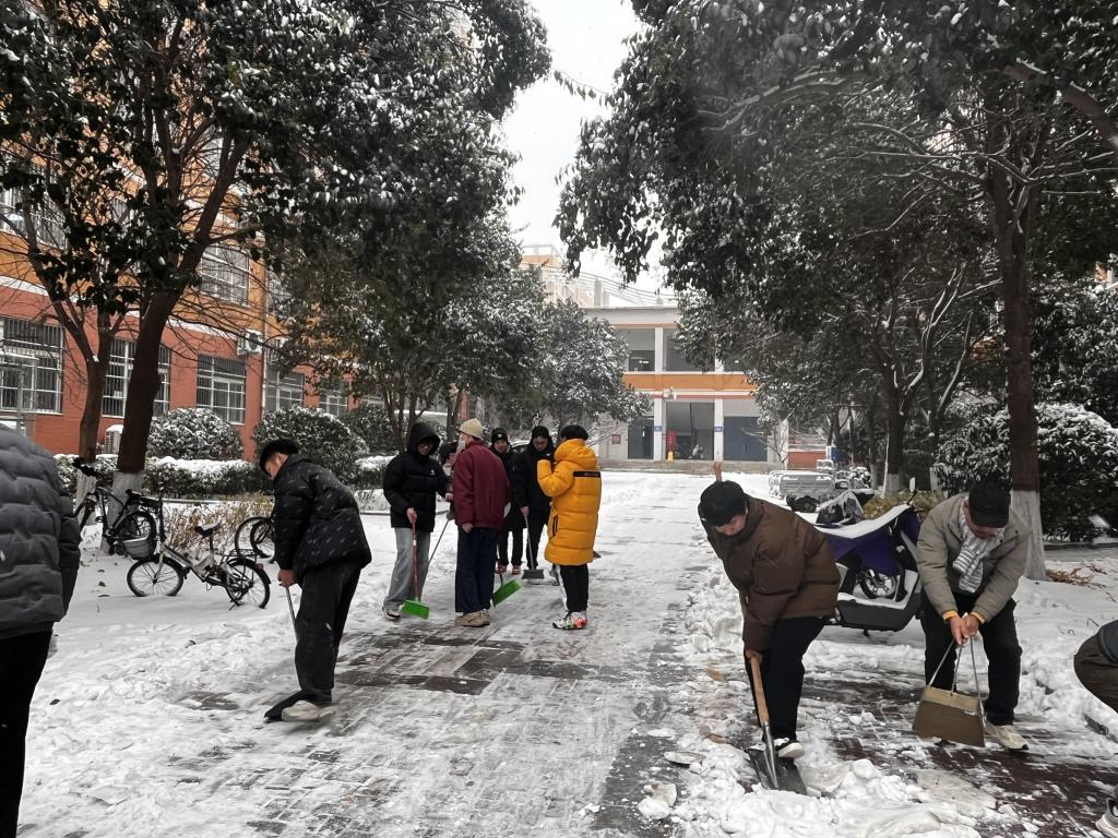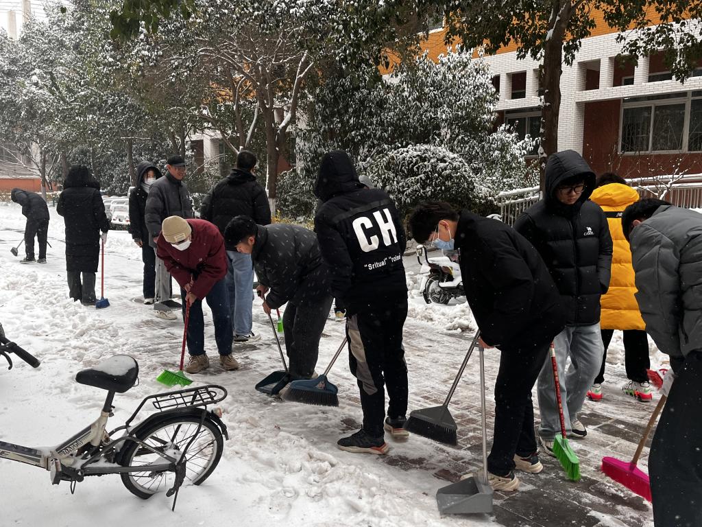 本次主题党日活动内容为将学院楼前积雪进行清扫。